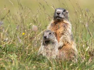 Le tenere immagini di mamma marmotta col suo piccolo in Trentino, il fotografo: “Scena emozionante”