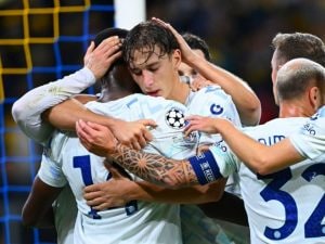 Francesco Pio Esposito pochi giorni dopo aver segnato il suo primo gol con la Nazionale Italiana, si ripete con la maglia dell'Inter in Champions League: prima rete in nerazzurro in Coppa. Con l'abbraccio emozionato a Bonny, autore dell'assist.