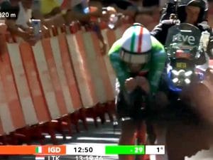 Grande prova di Filippo Ganna alla cronometro della Vuelta: ha vinto di un solo secondo su Jay Vine, chiudendo in 13 minuti ad una media superiore ai 56km/h. Per la prima volta non si sono verificati incidenti con gli attivisti ProPal.