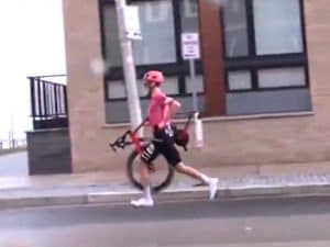 Scena surreale durante la Maryland Cycling Classic: Neilson Powless buca ma l'ammiraglia non si presenta, così si carica la bici in spalla e inizia a correre. Proprio come fece Froome sul Mont Ventoux al Tour 2016.