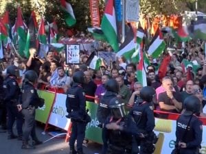 Nel giorno in cui la Premier Tech decide di cancellare la scritta "Israel" dalle proprie magli gli attivisti si sono impossessati delle frequenze della Radio ufficiale della Vuelta di Spagna. Dove sono risuonate le note di "Lunga vita alla Palestina", una nota canzone di propaganda.