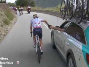 Lenny Martinez ha utilizzato la tattica della bottiglia appiccicosa in un momento difficoltà, di fiacchezza durante la durissima 18ª tappa del Tour de France. Il francese poco dopo è arrivato primo al GPM.