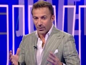 L'ex calciatore è la seconda voce accanto a Stefano Borghi durante Juventus-Borussia Dortmund di Champions. Si lascia sfuggire commenti ed espressioni che fanno discutere.