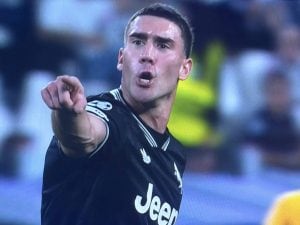 Vlahovic rabbioso dopo il secondo gol al Borussia Dortmund, gesti plateali: con chi ce l’aveva