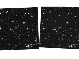 Grazie agli strumenti del Virtual Telescope Project (VTP) l'astrofisico Gianluca Masi è riuscito a cogliere un fenomeno spettacolare: il passaggio di una meteora innanzi alla cometa Lemmon, la cui scia persistente e sinuosa sembra avvolgere le code dell'astro chiomato. Un gioco prospettico eccezionale.