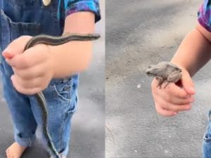 Bimba diventa virale mostrando i “tesori” che nasconde nelle tasche: “Ogni volta le riempie di rane e serpenti”