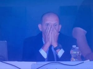 Massimiliano Allegri, squalificato, ha seguito Udinese-Milan dalla tribuna stampa: pugni sul tavolo, urla e nervosismo anche sul 3-0 per i rossoneri. Una scena che racconta tutto.