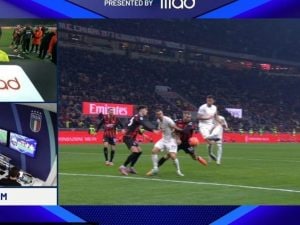 L'episodio da moviola si verifica al 95°. L'arbitro, Collu, va alla on-field-review in mezzo al caos di proteste. Quella situazione di gioco non è punibile con la massima punizione: il direttore di gara decide bene ma commette un errore. Perché? Quando lo dice in diretta si capisce cosa è successo.