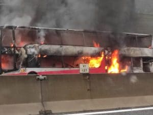 Le immagini dell’autobus in fiamme sulla tangenziale Nord a Milano: il conducente è riuscito a salvarsi
